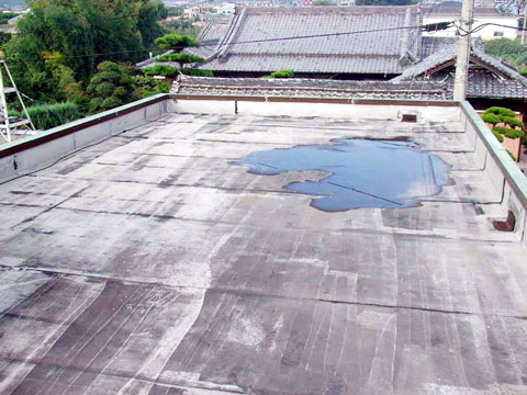 既存防水撤去コンクリート打設(水勾配取直し)の上加硫ゴムシート防水 |